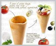 Готовый конус можно наполнять различными ингредиентами. Это могут быть: оливки, помидоры, сыр моцарелла, ветчина, колбаса, лук, артишоки, кукуруза, тунец и т.д. Можно использовать как готовые рецептуры рекомендованные нашей компанией так и изобрести свою уникальную. Вариации с ингредиентами практически бесконечны. Наполните сладкий конус шоколадным кремом, орехами, крупой или со свежими фруктами, утонувших в море заварного крема. Поверьте равнодушных не будет.